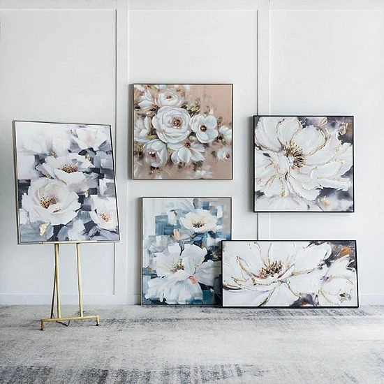 Give your living space an instant, eye-catching update with this A&B Home Blooming Florals Framed Hand-Painted Wall Art.