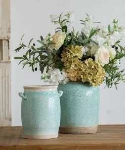 The simple, charming design of this Candia Pale Turquoise Ceramic Vase offers a versatile look and use around the home.