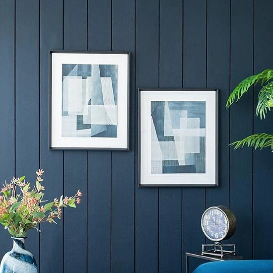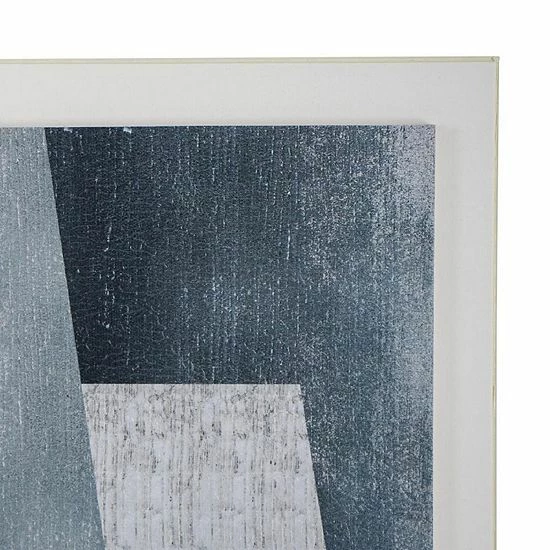 - With a black frame and matted in white, the layers of muted blue stand out with an architectural inspired feeling