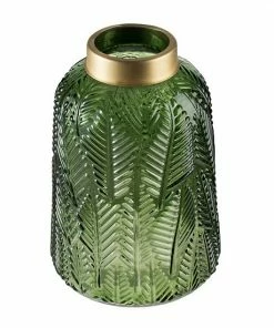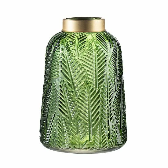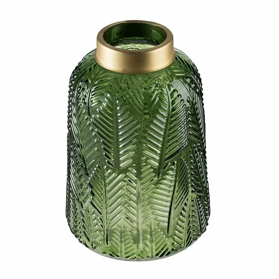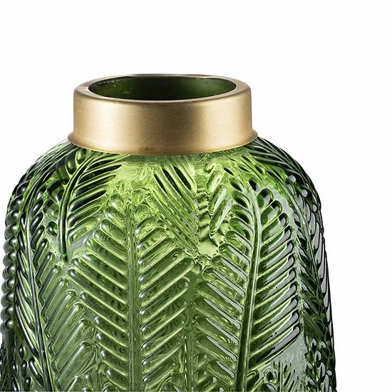 This Green & Gold Fern Leaf 9-Inch Glass Vase adds an elegant, retro look to any room.
