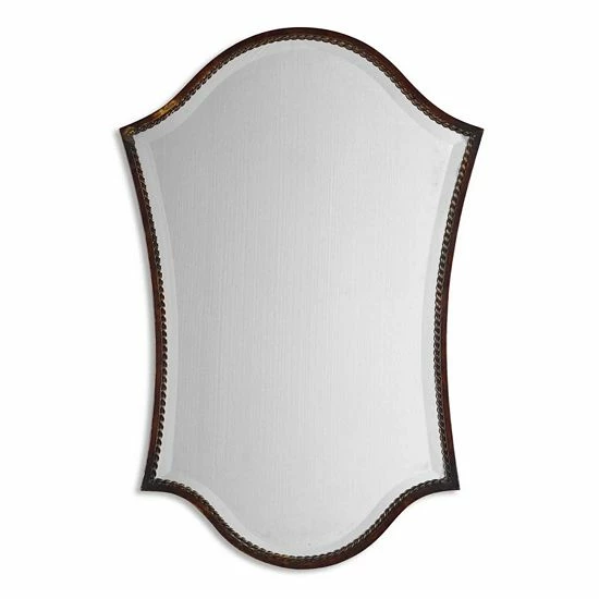 Curved and beveled edges put a shapely finish on this antiqued wall mirror.