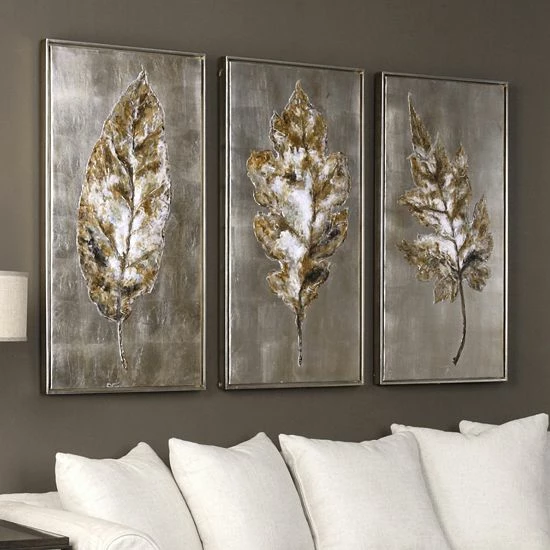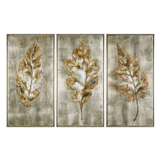 Earthy tones add to the contemporary charm of this Champagne Leaves framed wall art set.