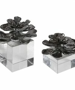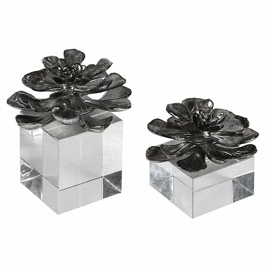Bring a boost of modern style to your home with this Uttermost Faux Lotus Flower Metallic Table Decor 2-piece Set.