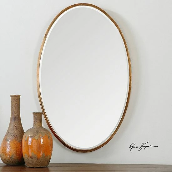 Beveled edges and gold-tone frame make this wall mirror an eye-catching fixture in any room.