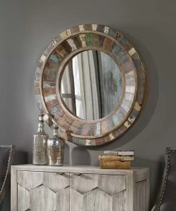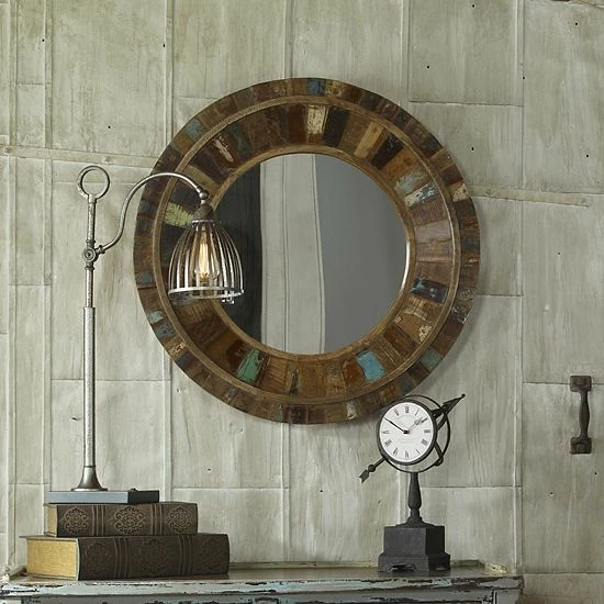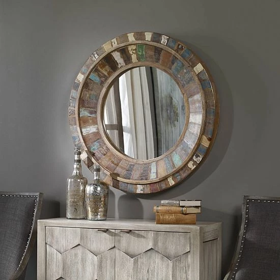 The unique color of this wall mirror will add a rustic touch to your room decor.
