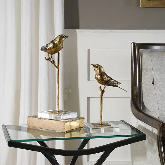 Bring a boost of modern style to your home with this Uttermost Passerines Bird Sculpture Table Decor 2-piece Set.